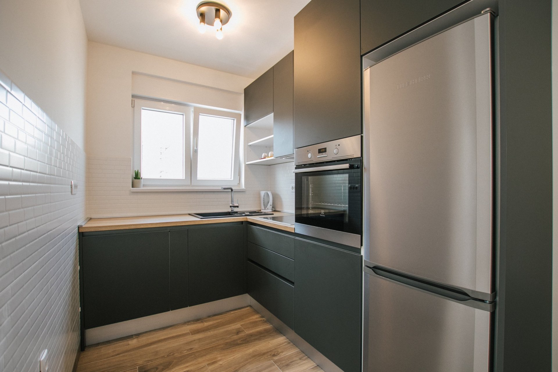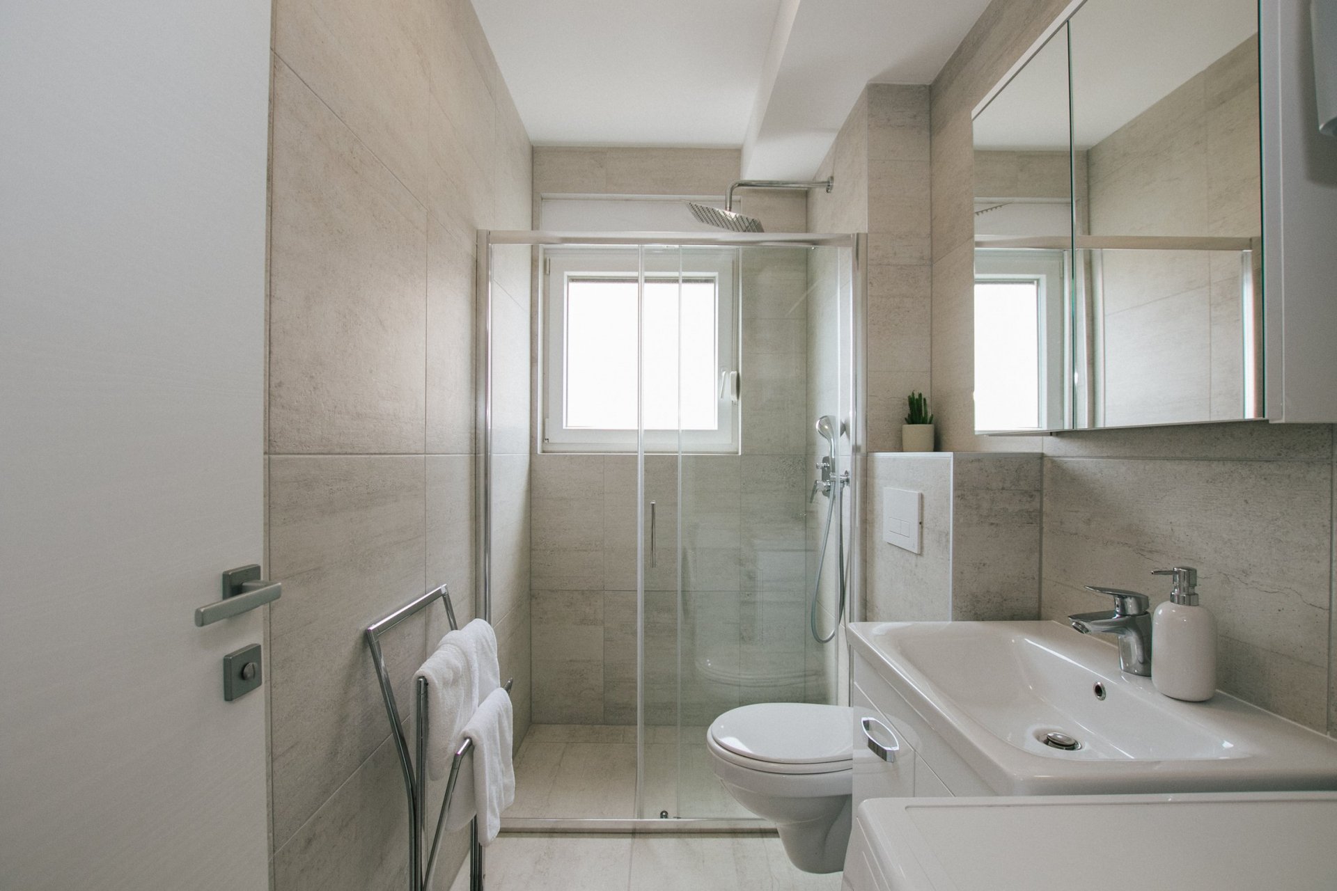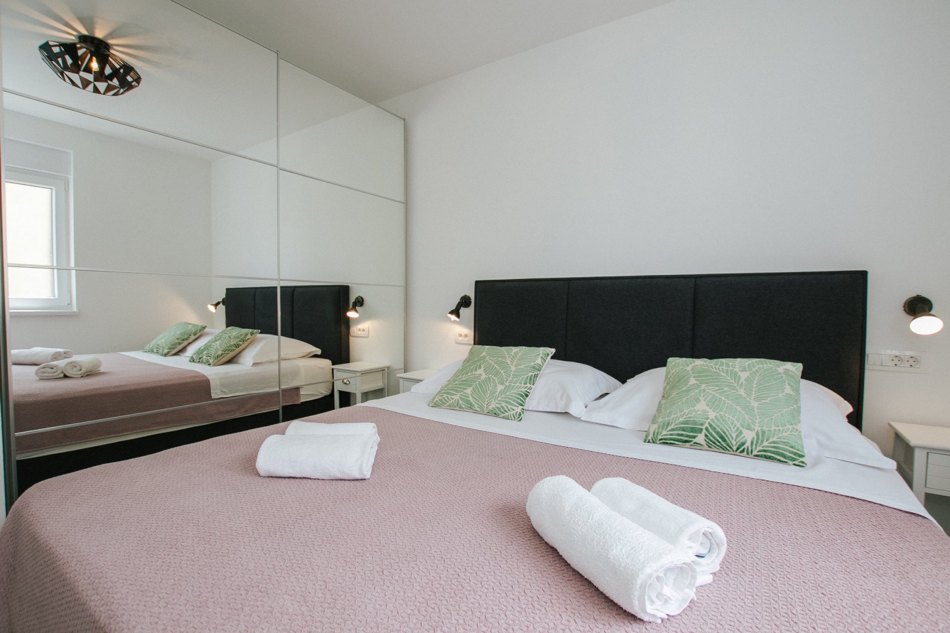 Completely new apartment located on 1st floor. It consists of two bedrooms, bathroom, kitchen with dining area and living room with entrance on covered terrace. There is one bedroom with double bed, and second bedroom with two single beds. Extra sleeping space is living room on sofa. Bathroom has shower and washing machine.