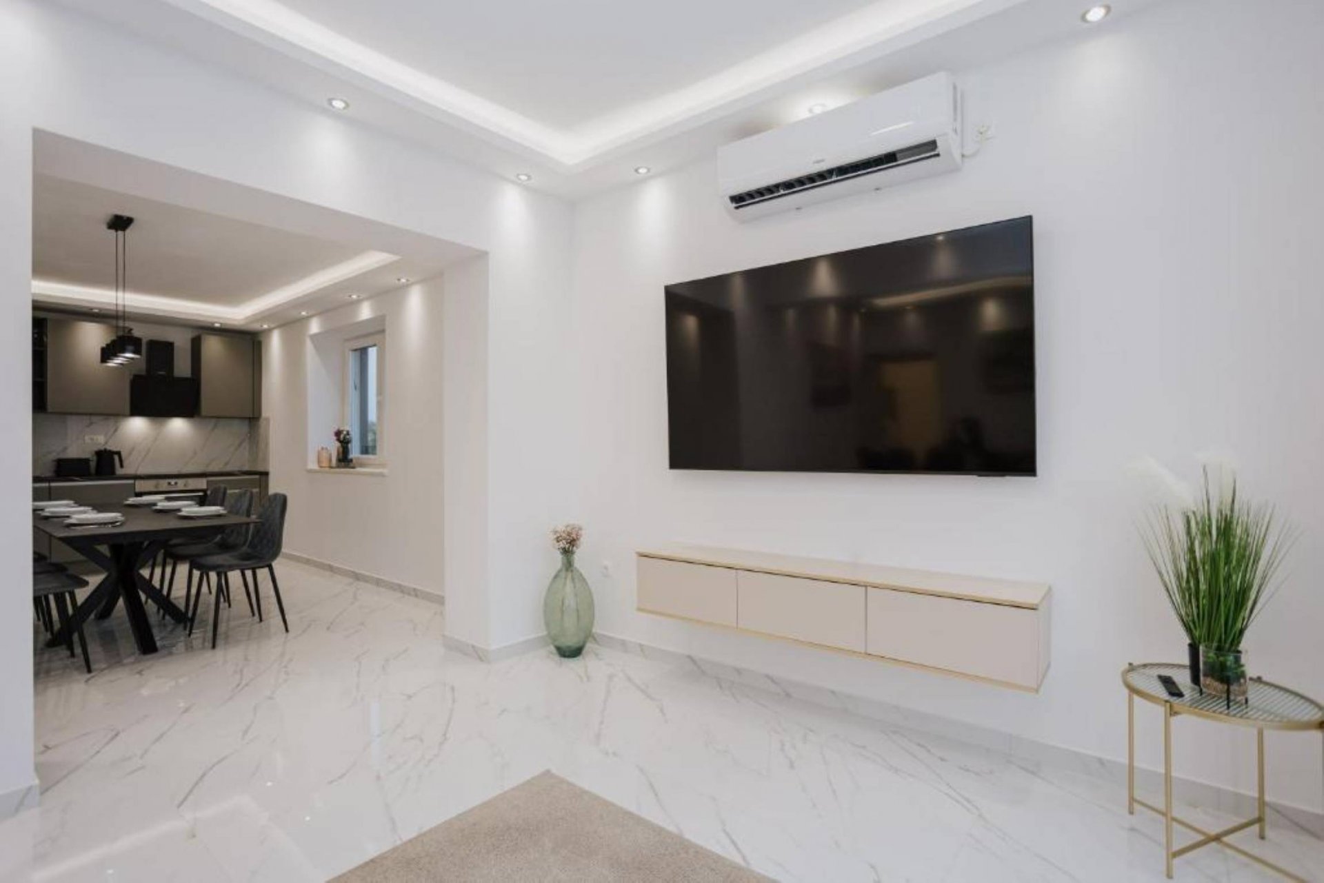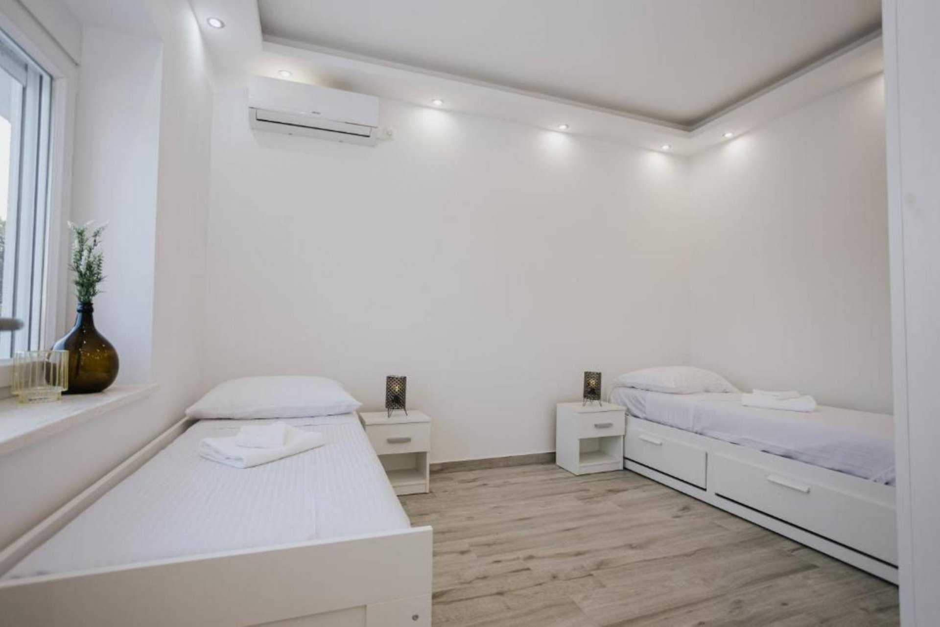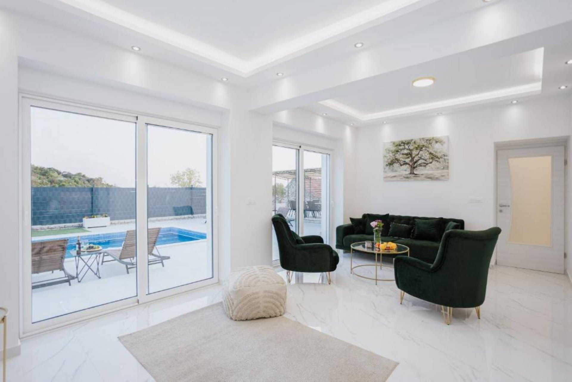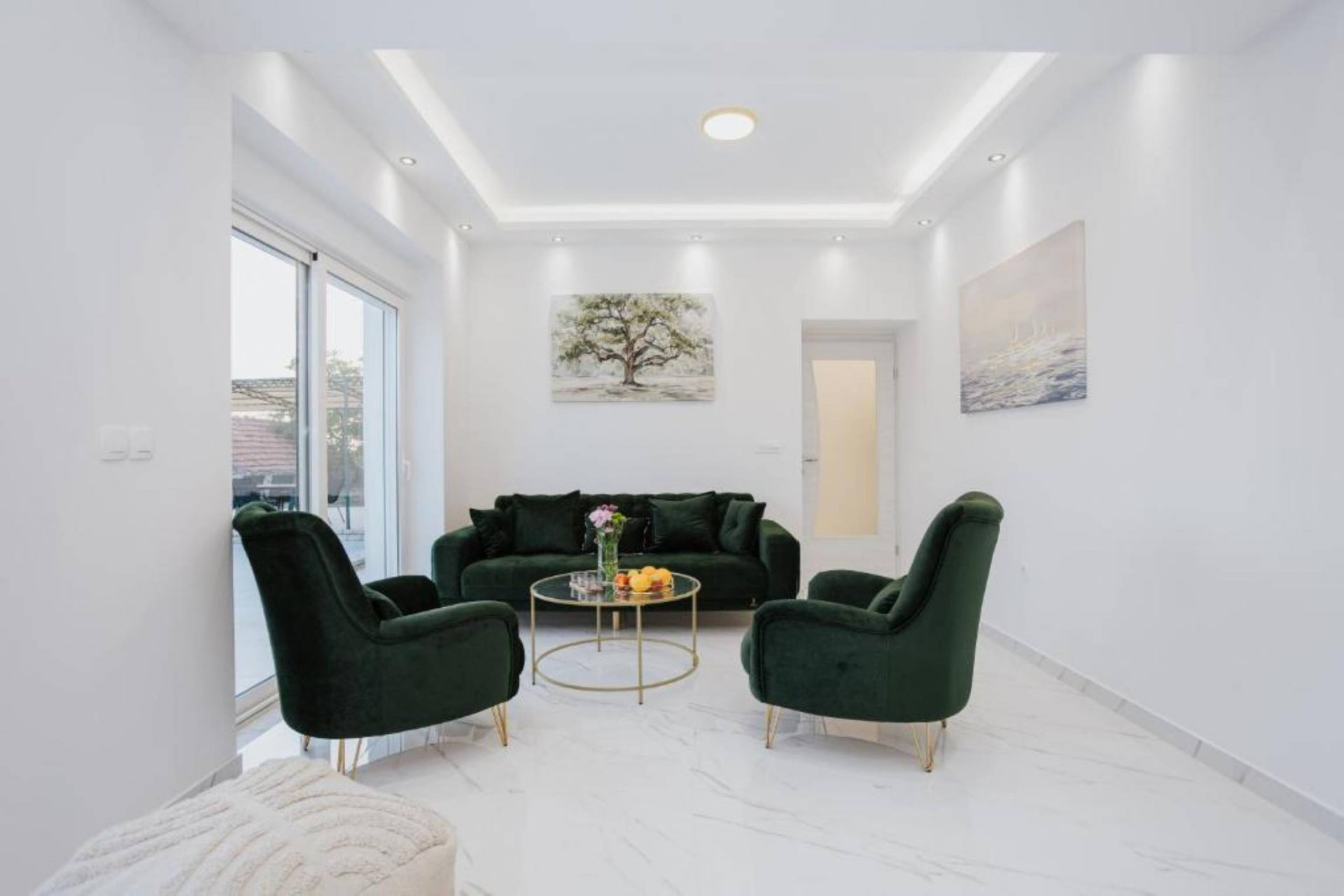 Escape to the peaceful embrace of Villa Verde, a beautifully crafted villa set on a single level and surrounded by the timeless beauty of an olive garden. This tranquil retreat offers privacy, comfort, and understated elegance – ideal for families or small groups seeking a quiet Mediterranean getaway. Step inside to discover a warm, open-concept interior filled with natural light. Outside, enjoy a spacious 200 m² private garden with an 8x4 meter swimming pool, sun loungers, umbrellas, and outdoor seating areas — all surrounded by olive trees and Mediterranean greenery.